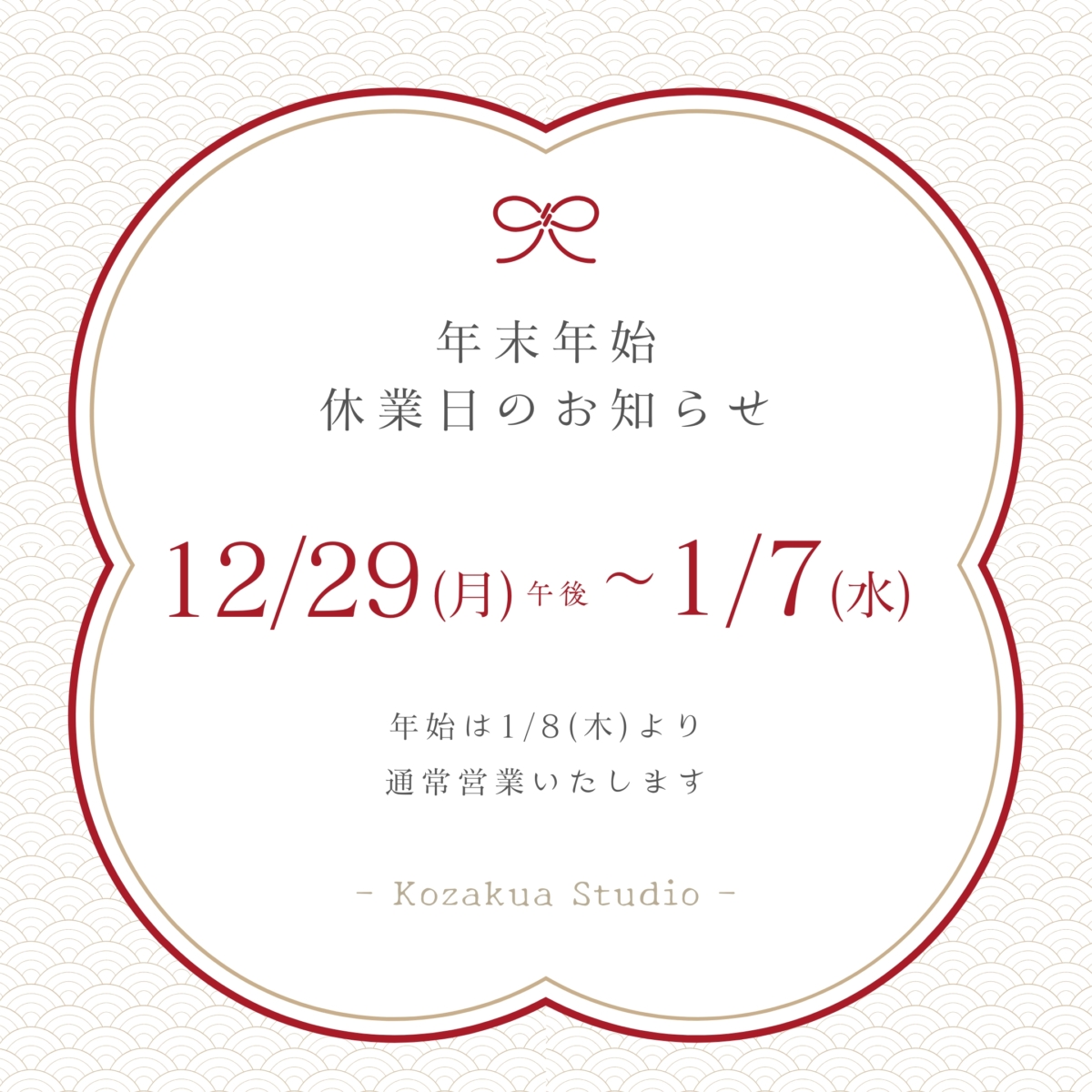 年末年始のお知らせ