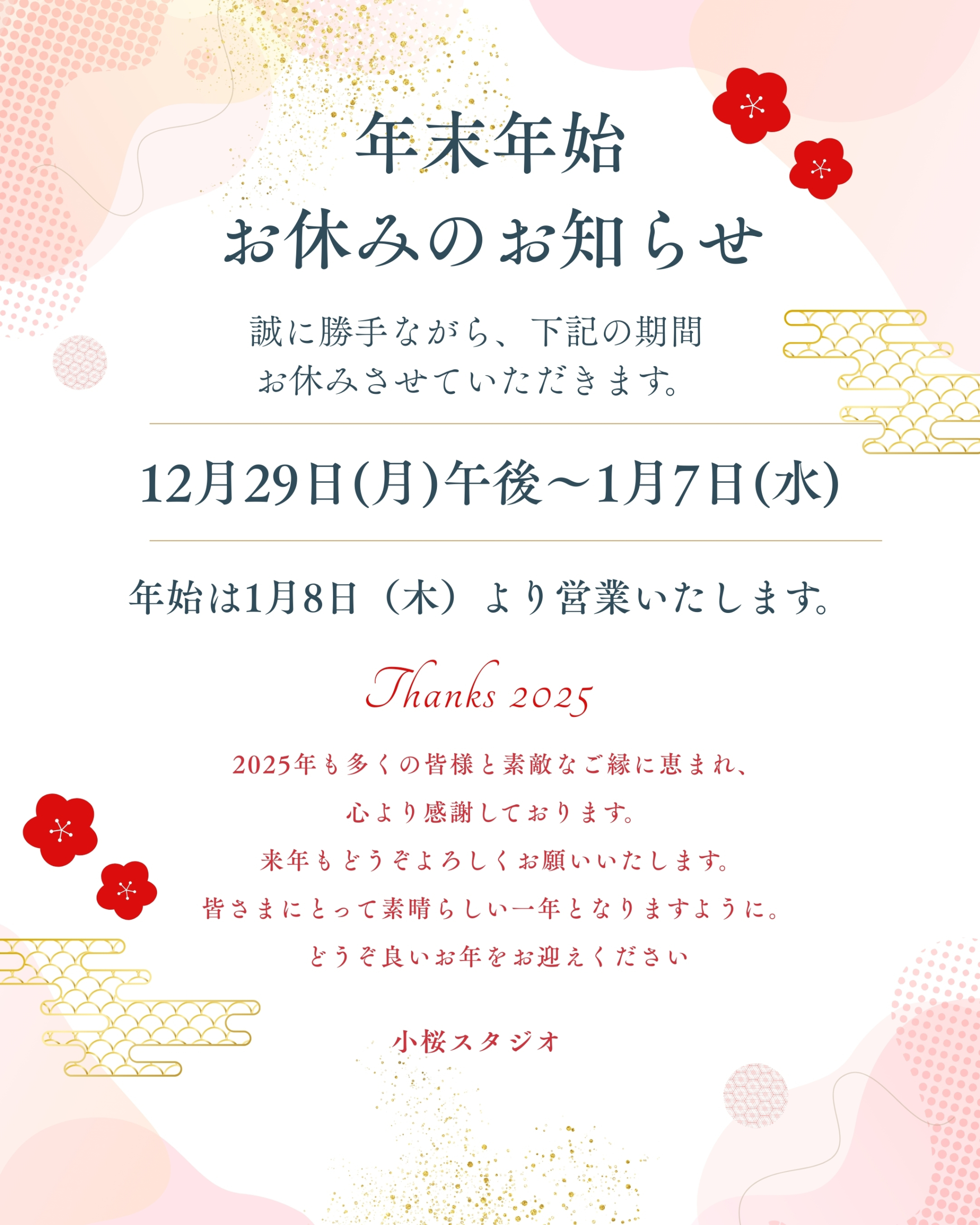 年末年始のお知らせ インスタ